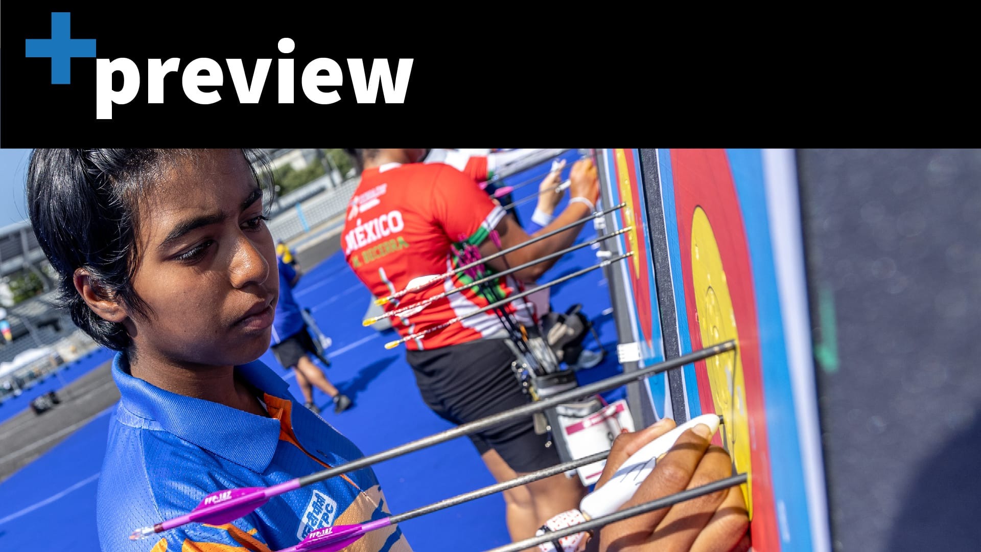 Compound women’s team gold medal match between India and Mexico on 19 August 2023 at the fourth stage of the 2023 Hyundai Archery World Cup in Paris, France.