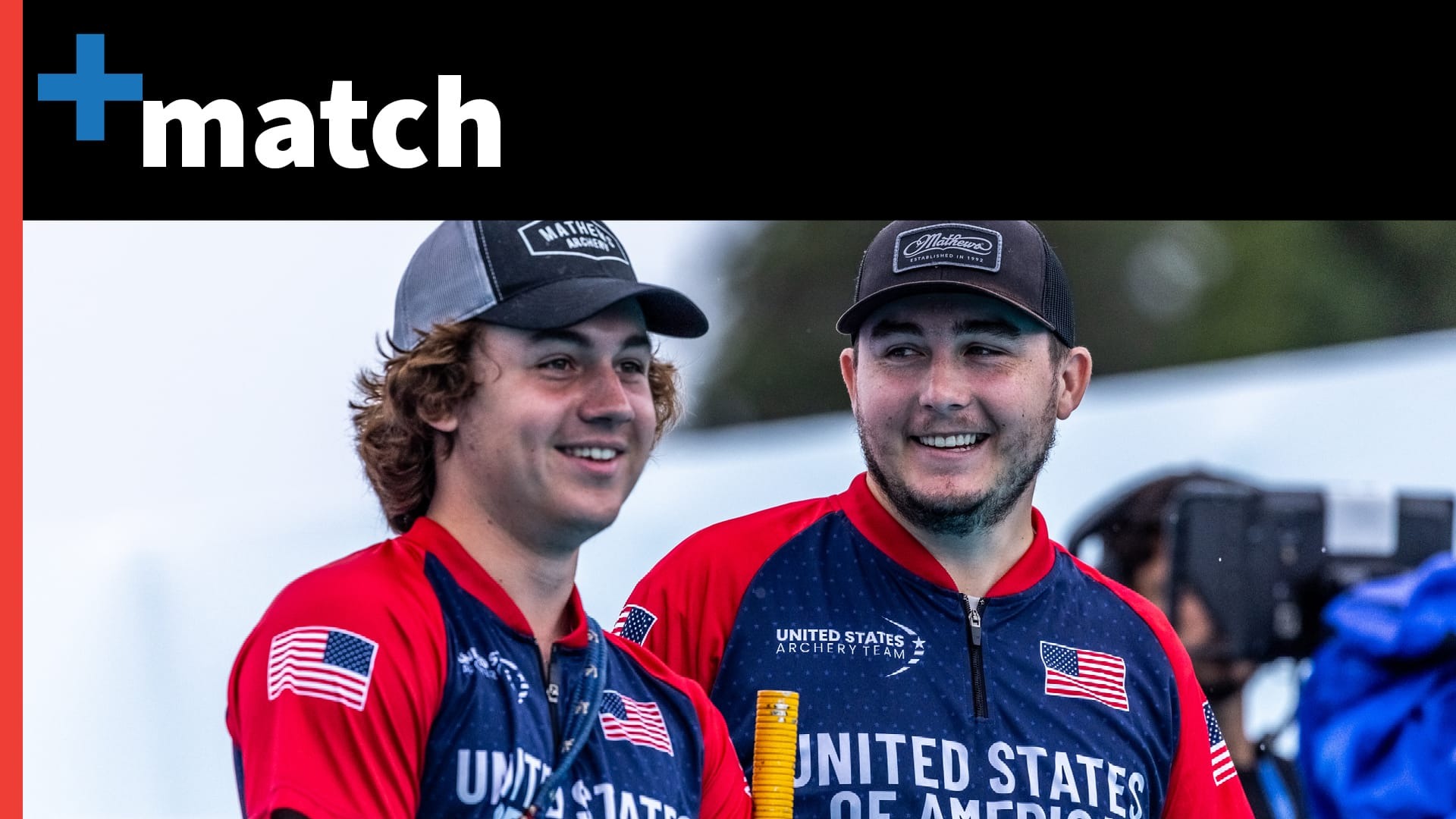 Compound mixed team bronze medal match between the Netherlands and Denmark on 19 August 2023 at the fourth stage of the 2023 Hyundai Archery World Cup in Paris, France.