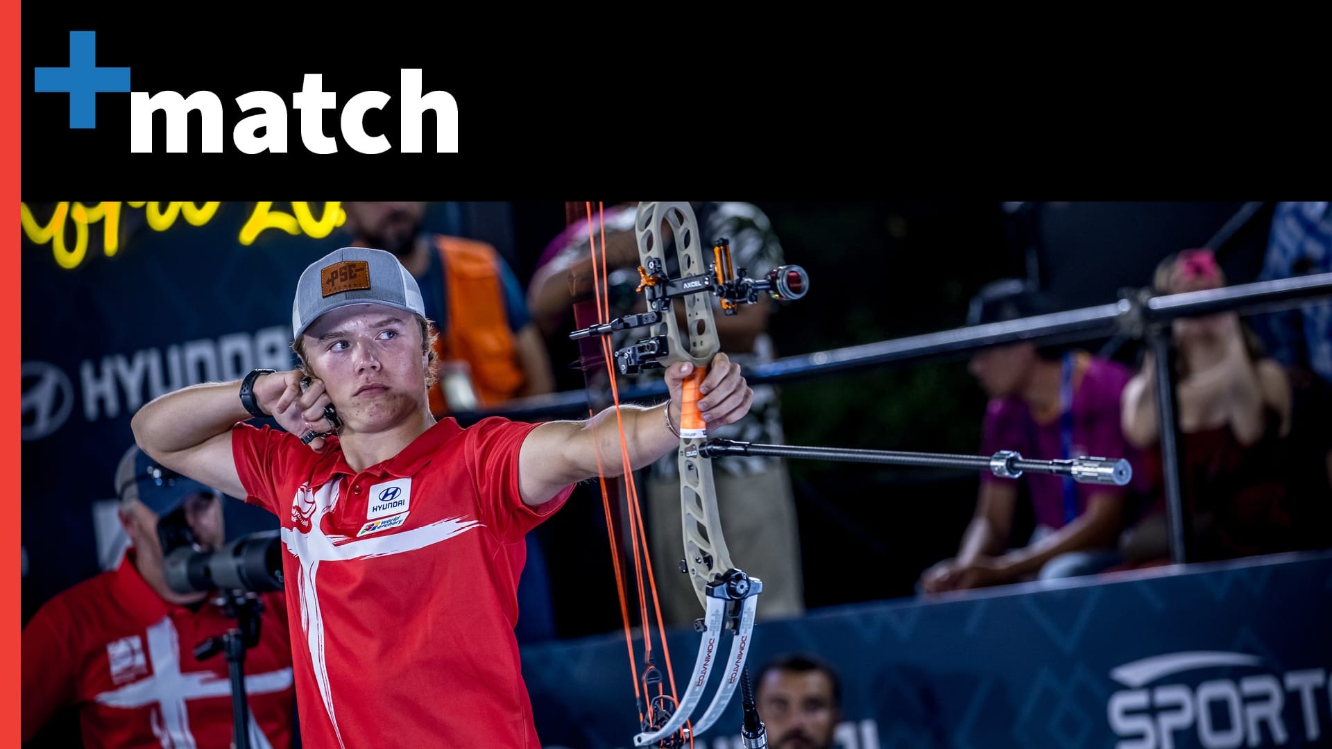 Compound men’s semifinal match between Prathamesh Jawkar (India) and Mike Schloesser (Netherlands) on 9 September 2023 at the 2023 Hyundai Archery World Cup Final in Hermosillo, Mexico.