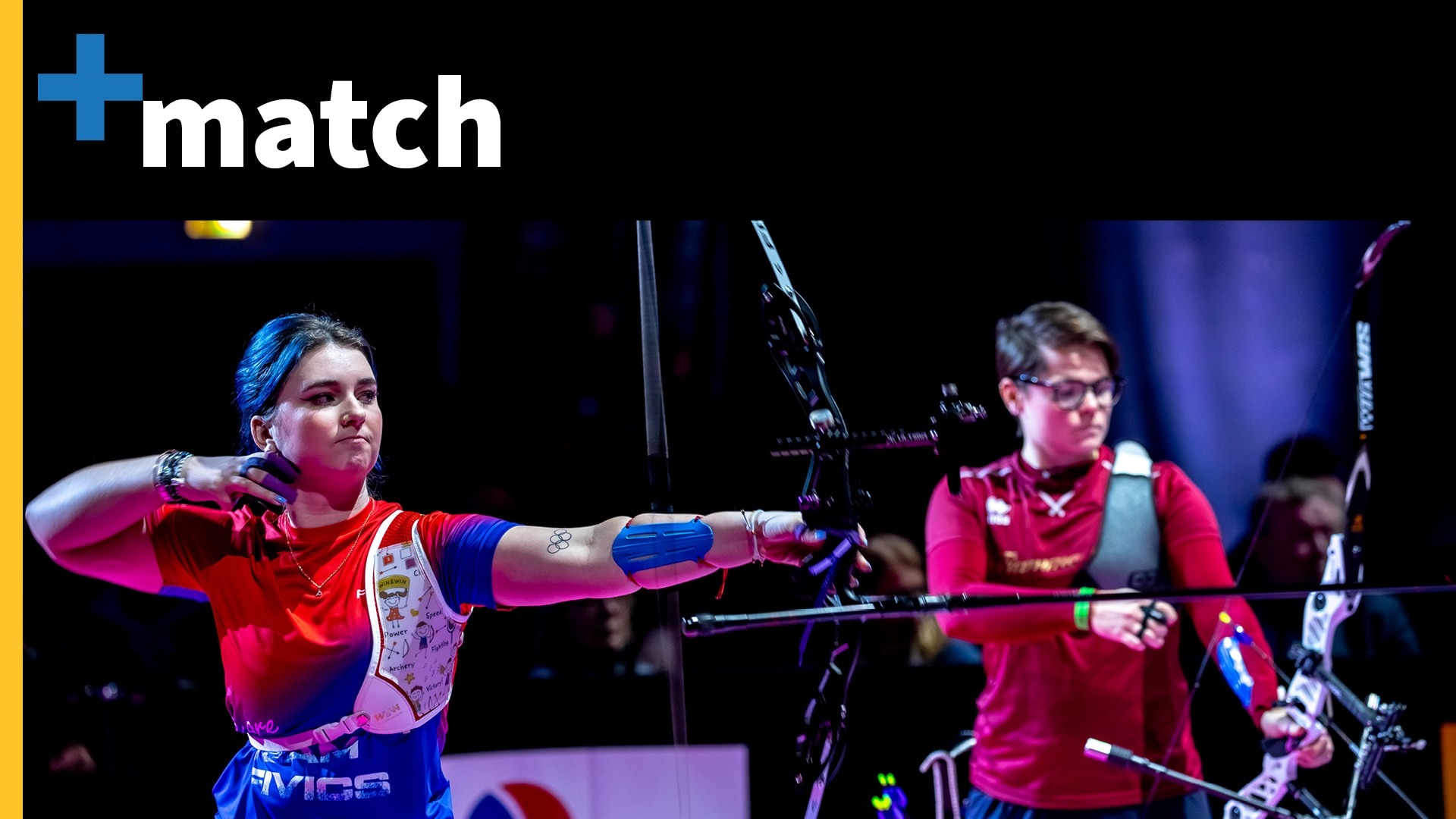 Recurve women’s bronze medal match between Reena Parnat (Estonia) and Victoria Sebastian (France) on 19 January 2025 at the Nîmes Tournament in Nîmes, France.