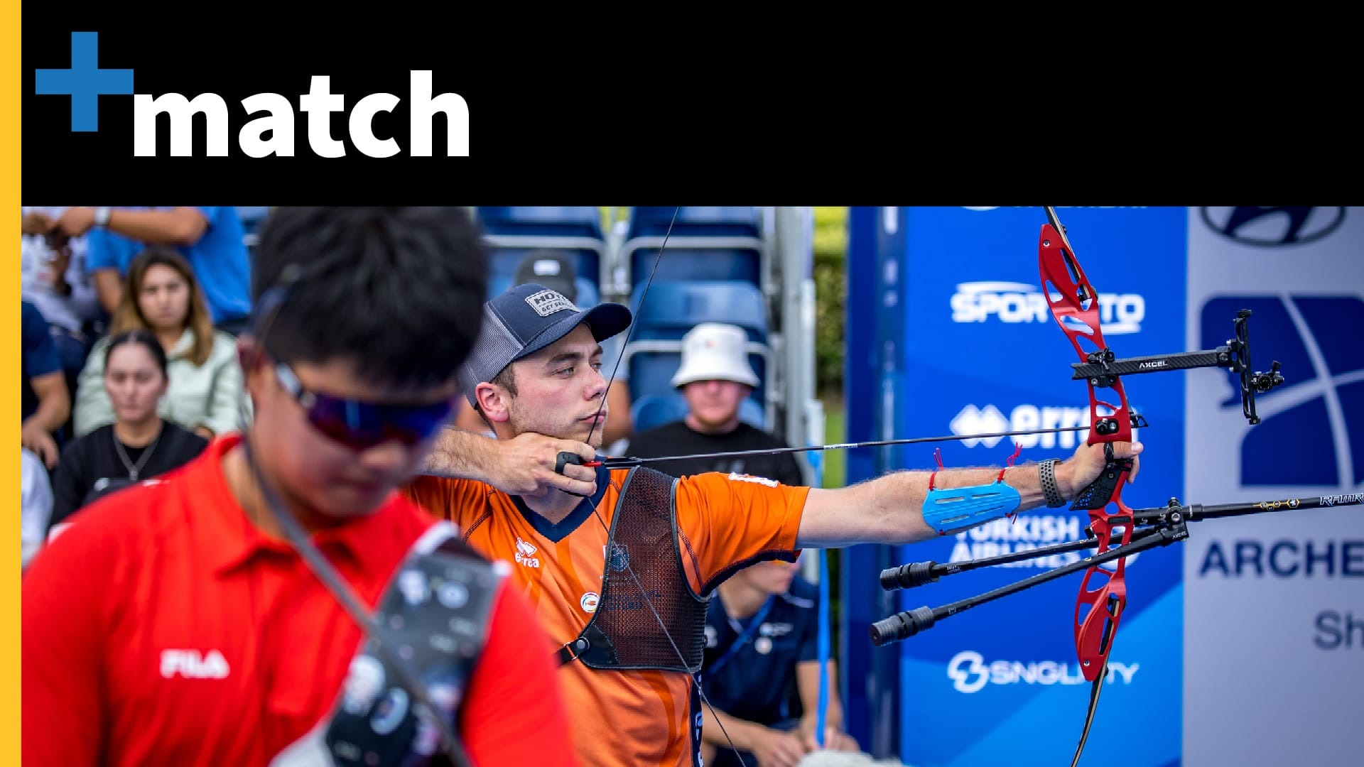 Recurve men’s gold medal match between Oh Jin Hyek (Korea) and Marcus D’Almeida (Brazil) on 21 May 2023 at the second stage of the 2023 Hyundai Archery World Cup in Shanghai, China.