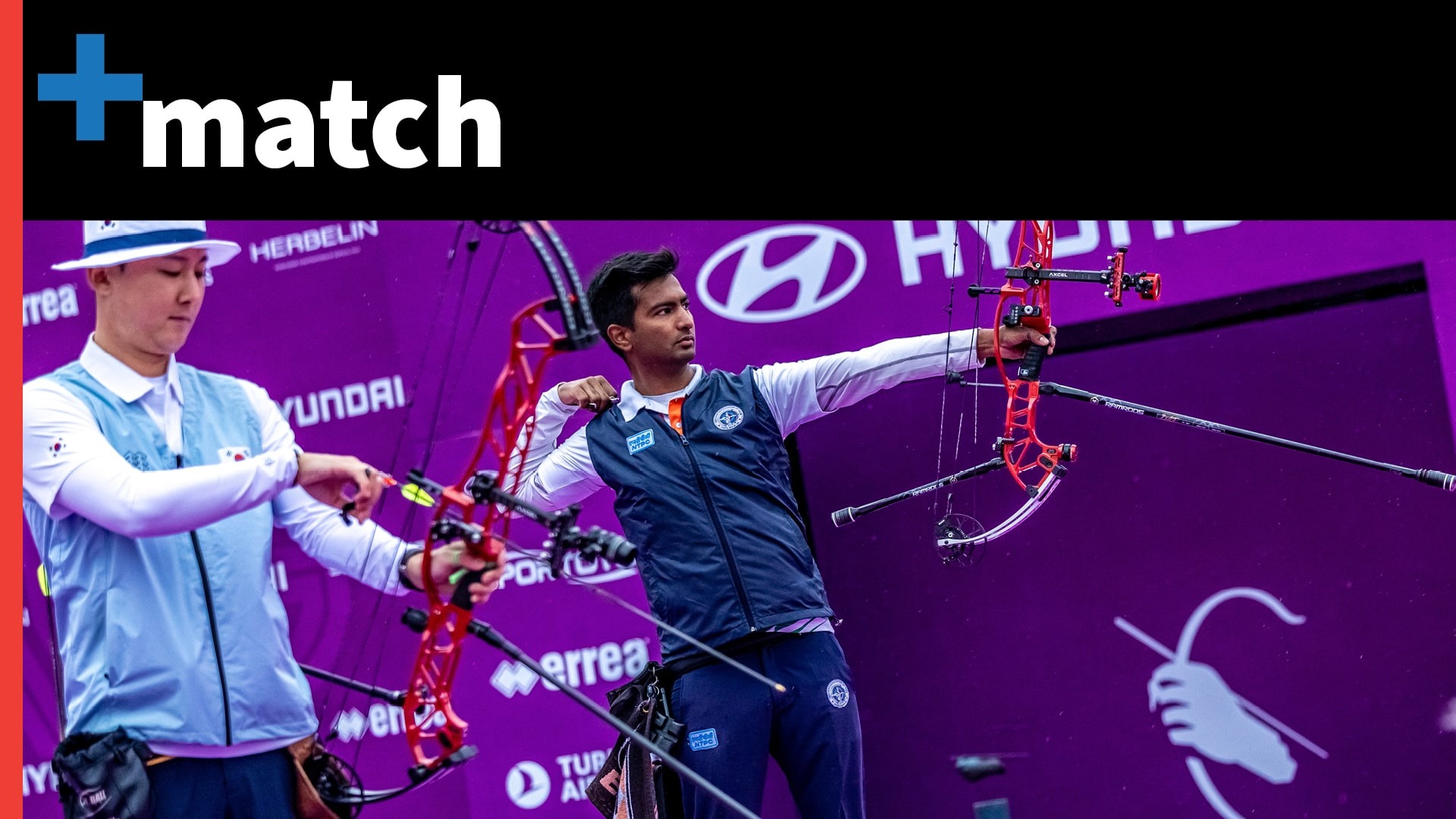 Compound men’s quarterfinal match between Emircan Haney (Türkiye) and Nicolas Girard (France) on 18 October at the 2025 Hyundai Archery World Cup Final in Nanjing, China.