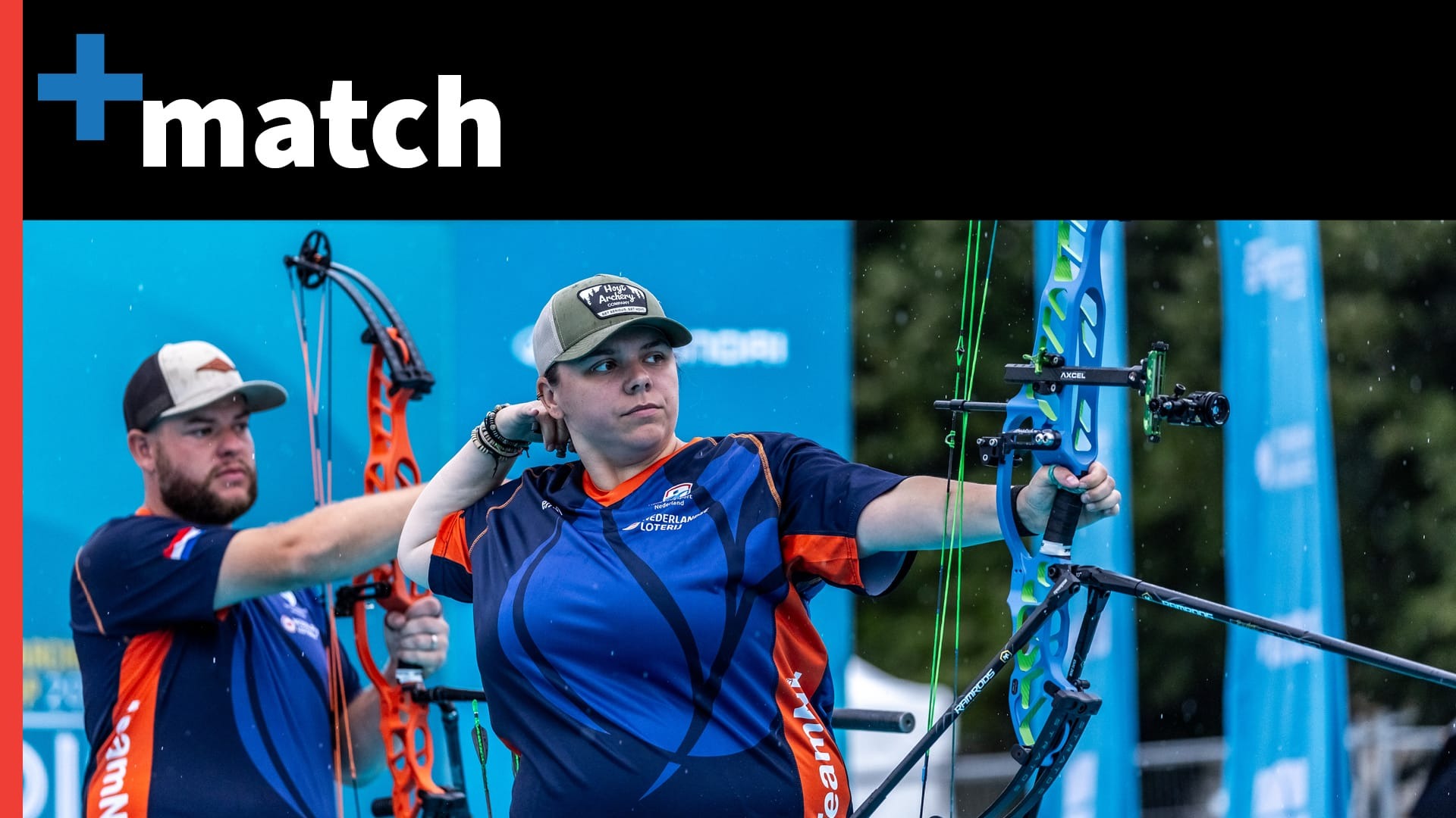 Compound mixed team gold medal match between the USA and Puerto Rico on 19 August 2023 at the fourth stage of the 2023 Hyundai Archery World Cup in Paris, France.